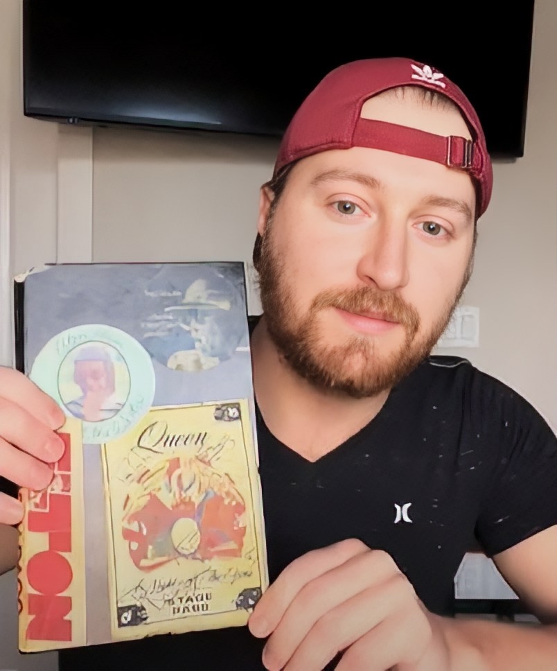 Christian holding an expense book from Queen‘s 1976 tour that was found amongst Dane‘s things