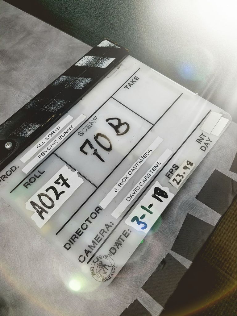 Now, I’ll be honest… I had no idea what a Script Supervisor did, but Sophia seemed confident that I would be able to pick up and handle what they would like for me to do. So I agreed (actually I squealed on my end of the email, but that wasn’t audible in what was transmitted back to her, thank goodness.) Apparently, I would be working close by Rick during filming… keeping track of the scene numbers and takes, making notes as to scene description, and indicating which takes the Director liked best when a series of takes were filmed of the same shot. Piece of cake. Haha. I came to understand that all of these notes were not only for reference during filming, but actually used most by the editor in post-production.