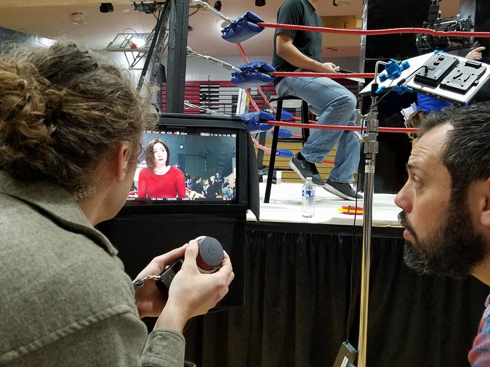 My specific working location was to be in front of the monitor which displays the camera’s view. The monitor is usually located somewhere just outside of camera range, and not necessarily in eye view of the set. Along with myself, I was accompanied by Rick and Austin Puckett, the 1st AC (First Assistant Camera or Focus Puller.) Occasionally we would have others join us as they looked on to see the take through the eye of the camera. This mobile area is affectionately known as Video Village.