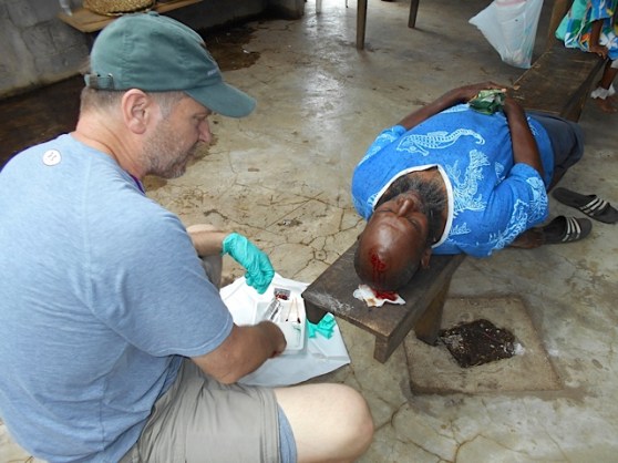 Greg Suturing a Wound in Vanuatu ~ Photo Courtesy of Greg Davenport